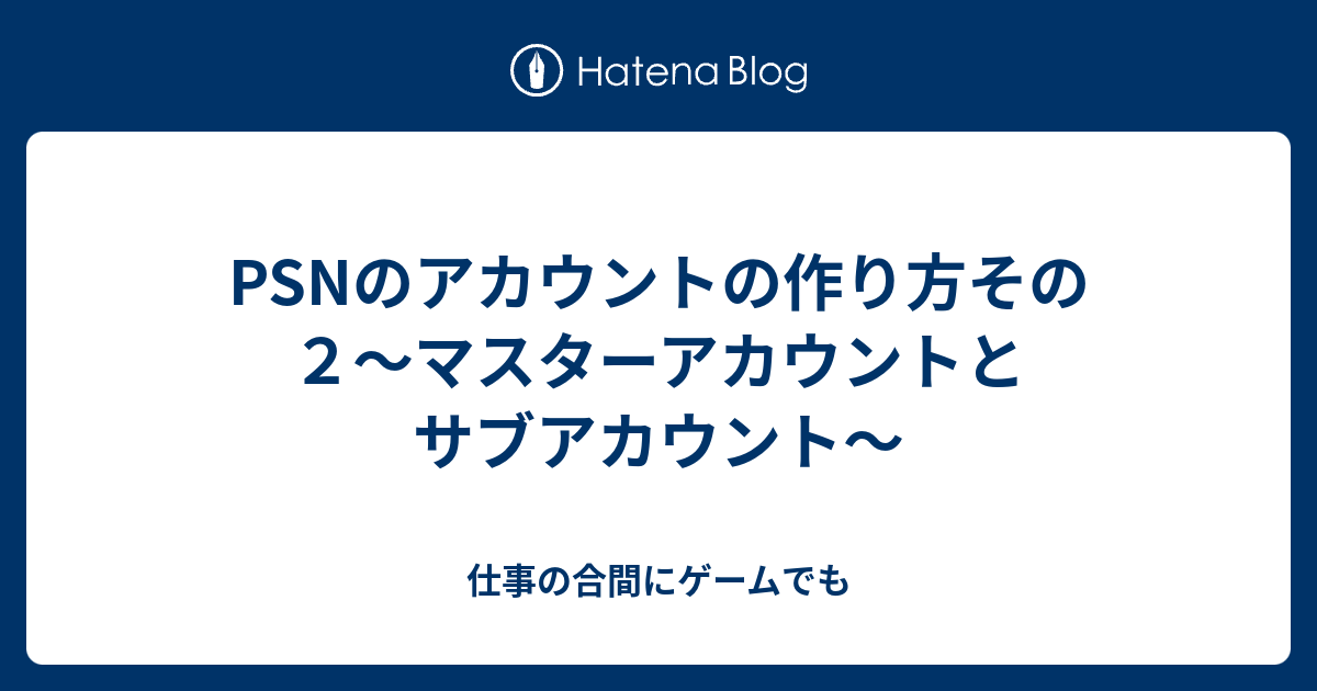 Psnのアカウントの作り方その2 マスターアカウントとサブアカウント 仕事の合間にゲームでも