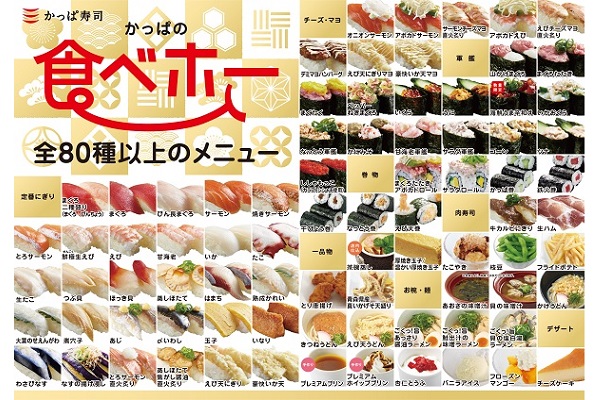 かっぱ寿司で 食べ放題 はじまる 寿司やサイドメニュー80種以上が1 580円で えん食べ