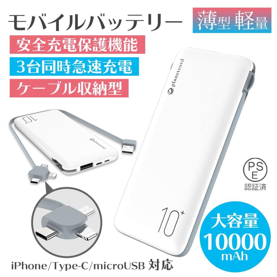 Qi ワイヤレス充電器 モバイルバッテリー 大容量 10000mah ケーブル内蔵 Type C Iphone Microusb 軽量 薄型 残量表示 Pse認証済の通販はau Pay マーケット 町のお店